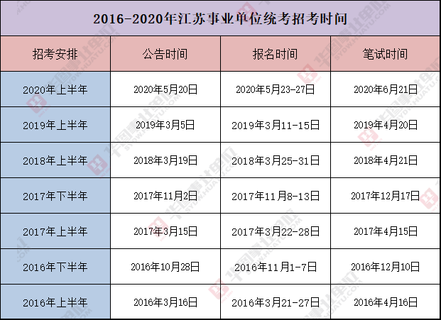 小图整理了2016-2020年的江苏事业单位统考时间,供大家参考