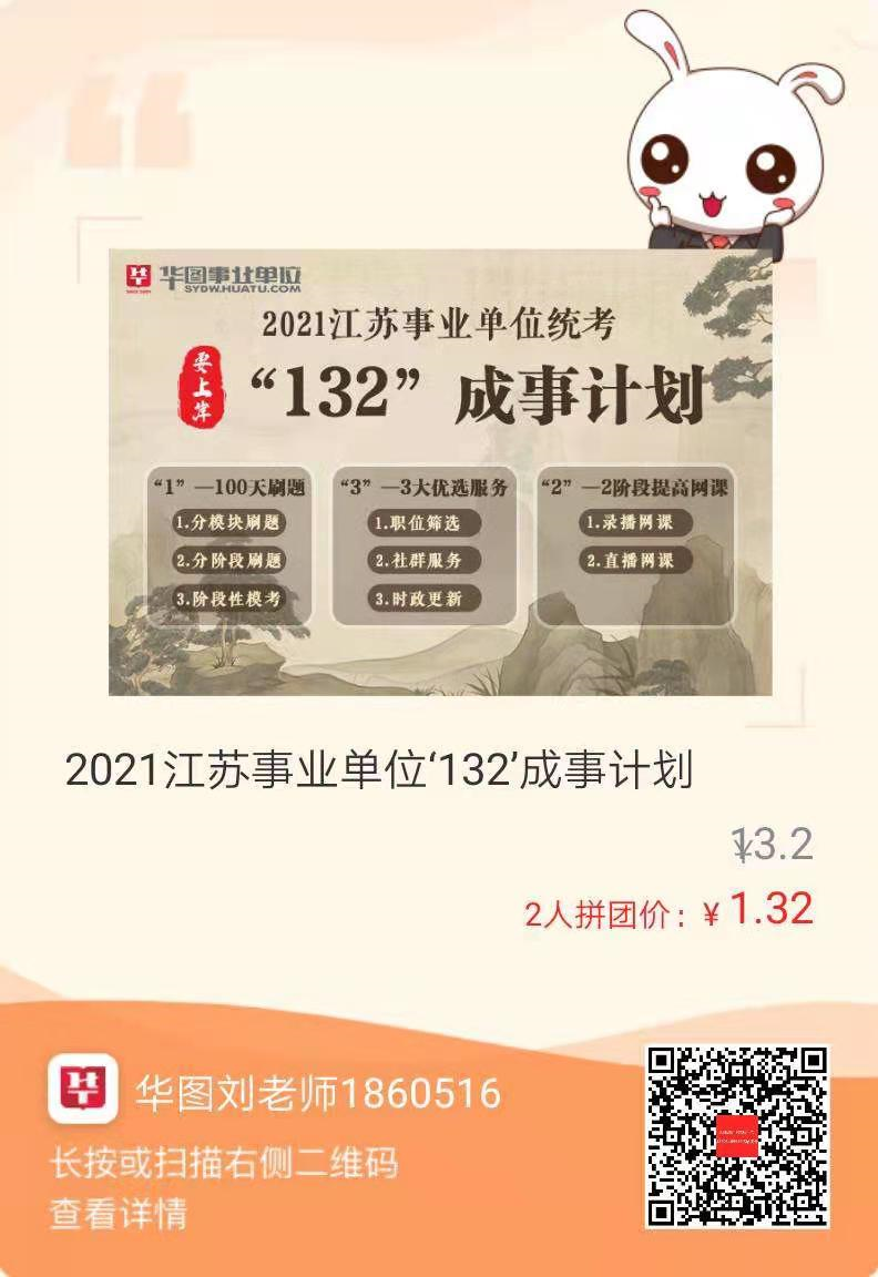 132成“事”计划,100天刷题+2阶段网课+3大服务!从备考到上岸一站式搞定,模块刷题+阶段模考,还有精品网课,拼团只需1.32元!识别二维码查看详情哦!