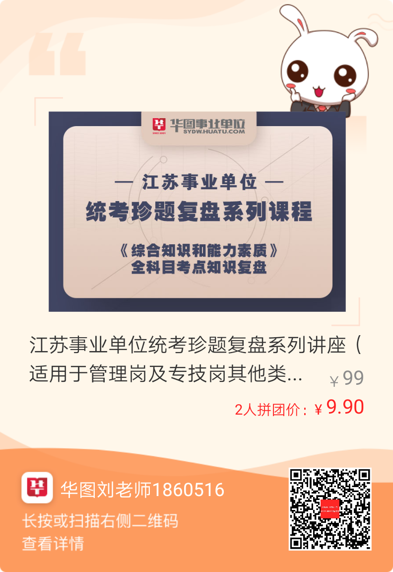 江苏事业单位统考珍题复盘系列讲座,《综合知识和能力素质》全科目考点知识复盘!5场系列讲座!剖析统考试题,握住命题方向,更有豪礼相赠,小白备考福音!原价99元,拼团仅需9.9元哦~